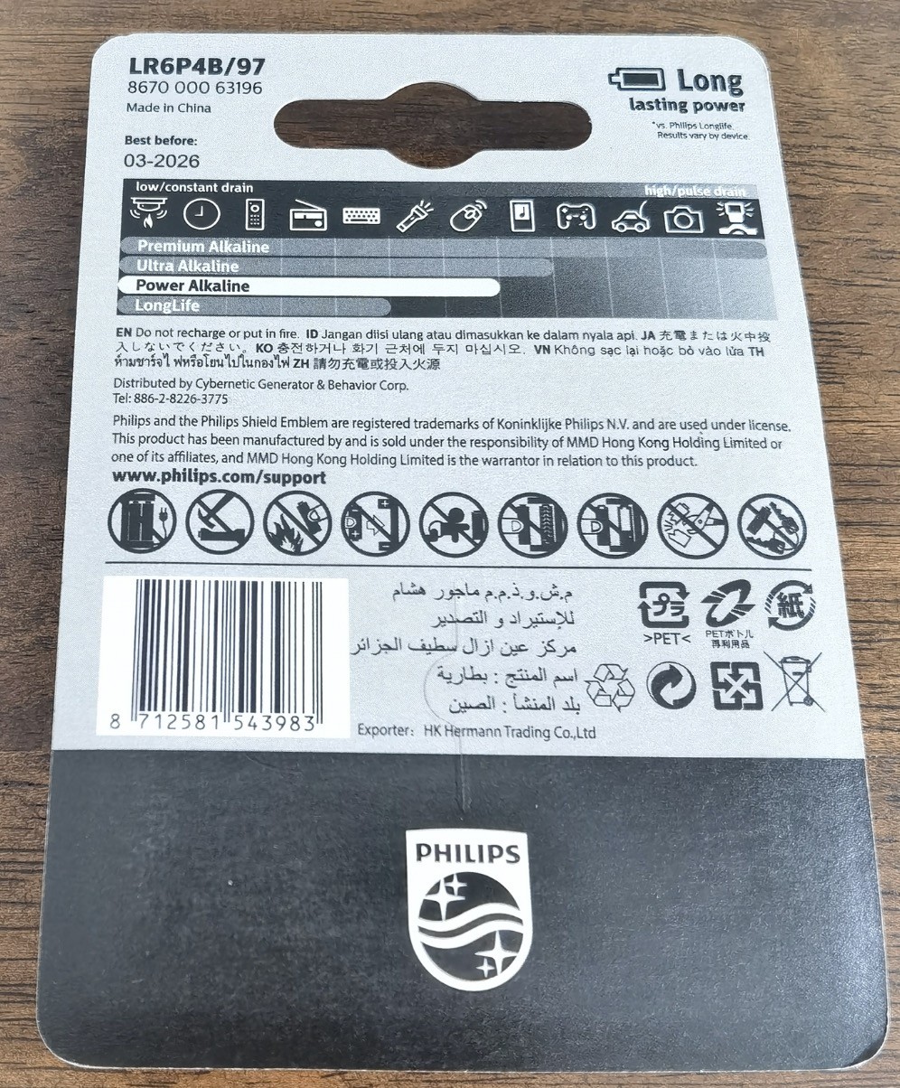 Puissance et longue durée fiables de PHILIPS Battery Power Alkaline 4*AA pour les dispositifs quotidiens
